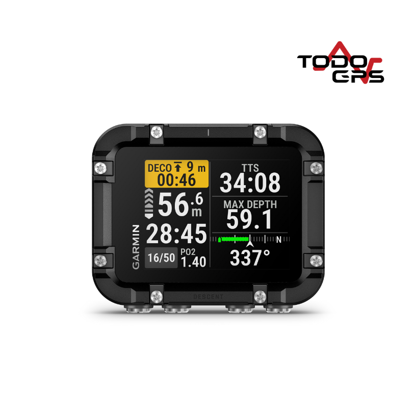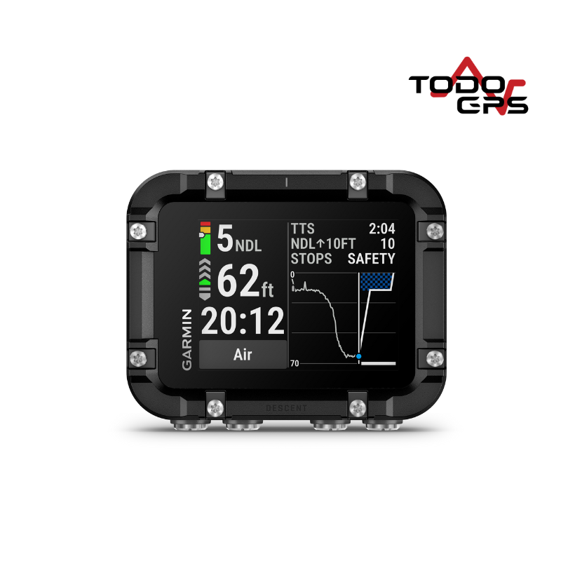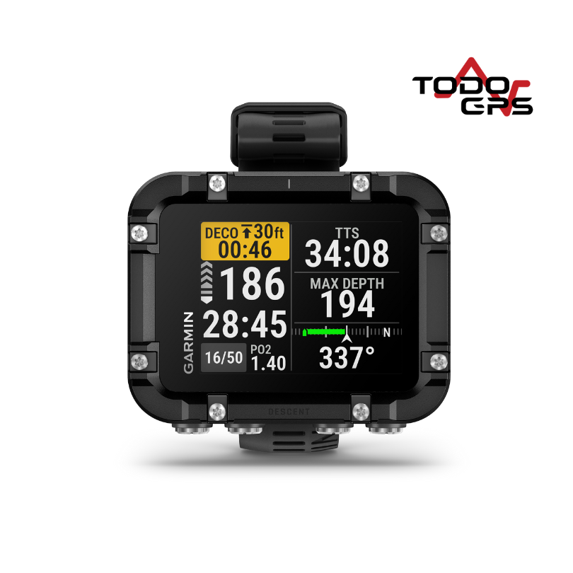 La navegación y el registro son clave. Con el GPS de superficie, puedes marcar con precisión tus puntos de entrada y salida, mientras que la brújula digital de 3 ejes te guía sin problemas bajo el agua. Todas tus inmersiones quedan registradas automáticamente, permitiéndote almacenar, revisar y compartir tus datos a través de la aplicación Garmin Dive™, que se sincroniza automáticamente con tu ordenador.