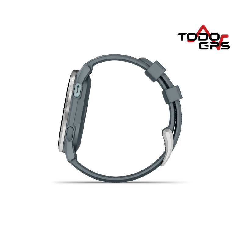 El Approach® S44 de Garmin es un smartwatch diseñado para golfistas que buscan mejorar su juego con tecnología avanzada. Combina un diseño ligero y elegante (bisel de aluminio plateado y correa de silicona negra) con funciones especializadas para ofrecer precisión y comodidad en el campo.